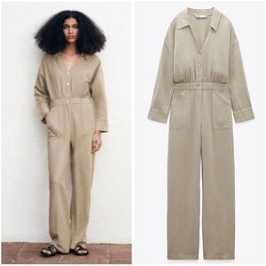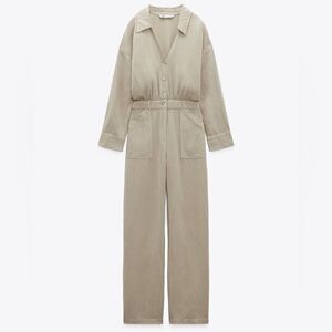 NWT LINEN BLEND LONG JUMPSUIT SAND L