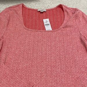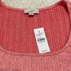 NWT- LOFT outlet - L & XL. Heathered coral/pink, textured cable patterned, curved square neckline, stretchy fabric,