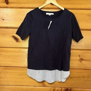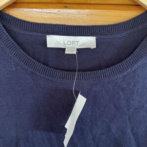 NWT-LOFT Navy Spotted Mixed Media Crossover Back Short Sleeve Sweater Top-XS