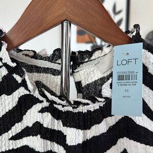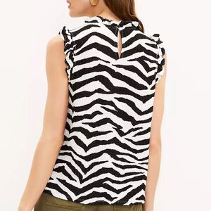 NWT LOFT Tiger Print Textured Ruffled Top Sleeveless M Ruffled Neck