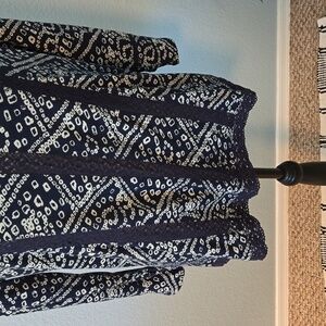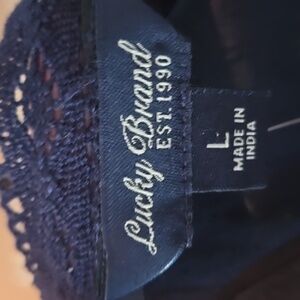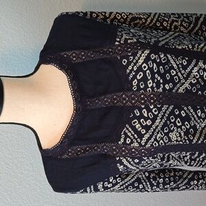 NWT*LUCKY BRAND Navy long sleeve tunic Lace inset white patterned. LARGE