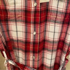 Brand new with tag. Women’s red plaid tie waist dress with pearl snap buttons. Western cowboy style. Comes from smoke and pet free home.