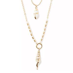 NWT LUCKY BRAND Gold-Tone Shell Charm Layered Necklace, 31" + 2" extender