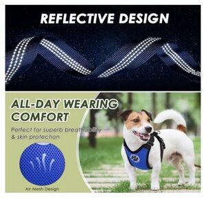 Adjustable dog car harness, soft padded and breathable mesh, blue, size small, please see pictures for weight and measurements