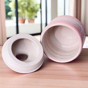 NWT LUNA & SAGE Gorgeous Macaron Pink White Glossy Ceramic 7”Canister Jar w Lid