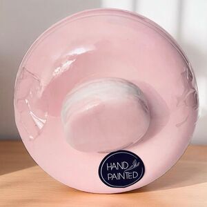 Macaron Pink & White Hand Painted Glossy Ceramic 7” Canuster Jar w Lid