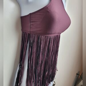 Super cute boho fringe bikini top from Lisa Vogel. New with tags. Size XS. There is a tiny pull in the fabric on the back as shown in the pictures.