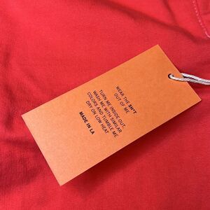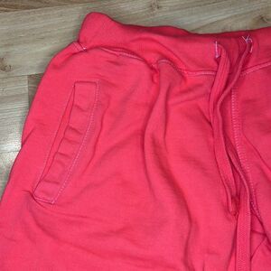 NWT super soft and comfy cotton/poly blend cutoff sweats. Made in LA. Size Small but measurements taken flat are approximately 14” across waist, 9” rise, 11” inseam. True color is most like first photo, a bright coral red.