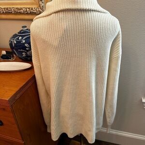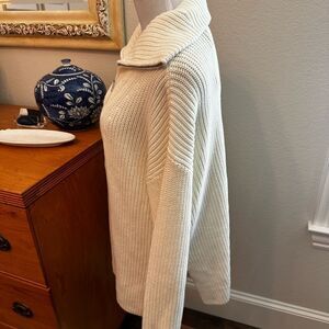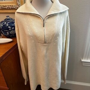 Based off our always-sold-out Bastien Sweater, this half zip is the oversize version in easy cotton with the same ribbed double layer neck trim updated with a ribbed body to match plus side slits.