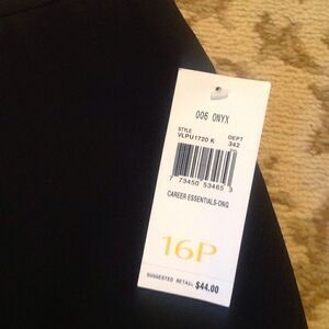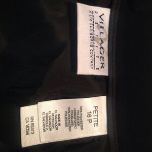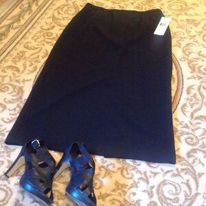 NWT Ladies floor length black skirt, full lined, from. Villager (Liz Claiborne Co). Back zipper wit a slit at the hem. Measurements are as follows: 33", hips 45", length 36".