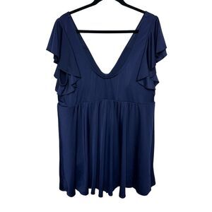 NWT Lane Bryant Flutter Sleeve Navy Blue Modest Swim Dress, Plus Size 24