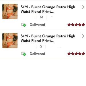 NWT Large: Burnt Orange Retro High Waist Floral Print Set