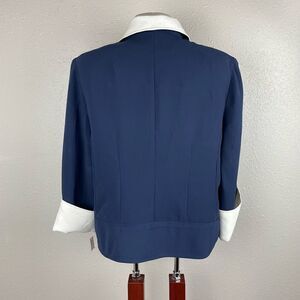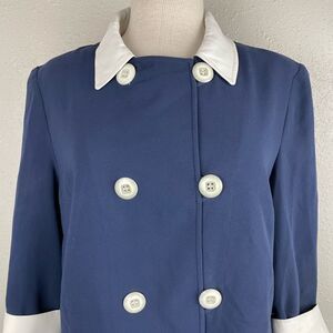 Stylish slightly cropped dress jacket by Larry Levine featuring a double breasted design. It measures 21 inches armpit to armpit laying flat and 21 inches in length from shoulder to hem.