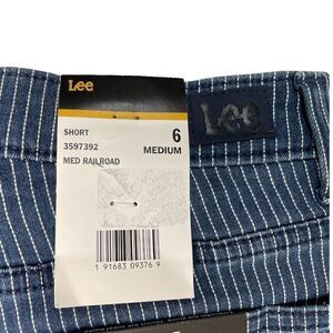 NWT Lee Regular Fit Shorts Size 6 Mid-Rise Blue w/ white stripes Inseam 4.5” Rise 9.5” Waist 14” flat lay