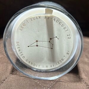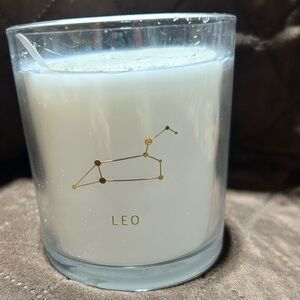 Elegant Leo zodiac candle in a clear glass holder. Perfect for adding a touch of astrology to your space.