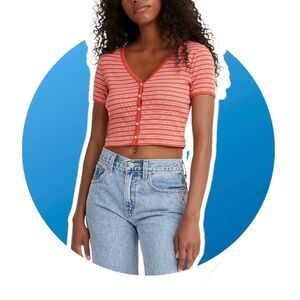 Rib-knit and styled perfectly for casual days, this Levi's top features a slim fit and cute look.