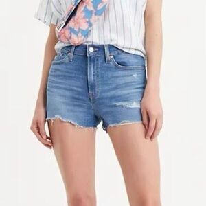 Levi’s High Rise Shorts size 27. Wash is called “Tribeca Sapphire Dust” which is a light blue rinse with intentional distressing and cut off hem. Super cute and perfect for spring and summer! Brand new with tags.
