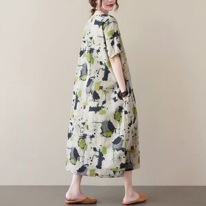 NWT-Linen Crew Neck Short Sleeve Dress w/ pockets