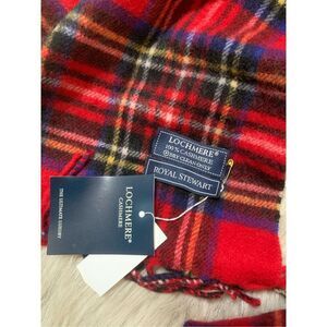 NWT Lochmere 100% Cashmere Red Black Tartan Plaid "Royal Stewart" Fringed Unisex Scarf