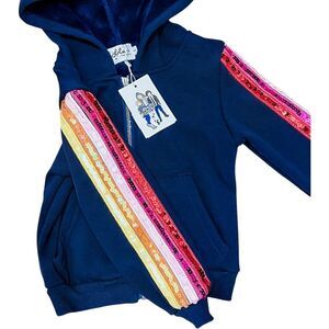 NWT! Lola and the Boys Navy Sequin Stripe Sleeve Zipper Hoodie Size 2