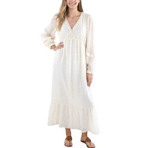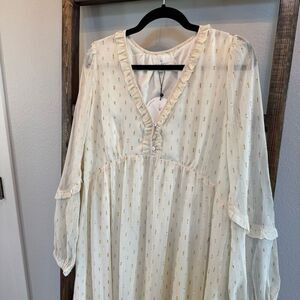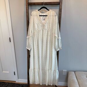 NWT Lost + Wander Cream Metallic Tea Length Maxi Dress