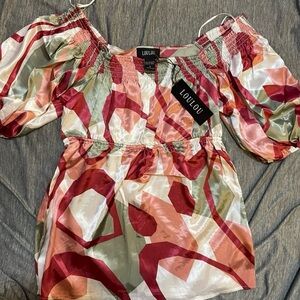 NWT-Lou Lou off the shoulder, smock Top soft 70s Groovy print