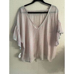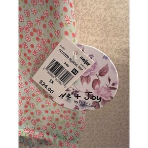 New with tags semi shear ruffle sleeve blouse. Armpit to armpit is 25 inches and length is 25 inches. Soft green with little pink flowers.