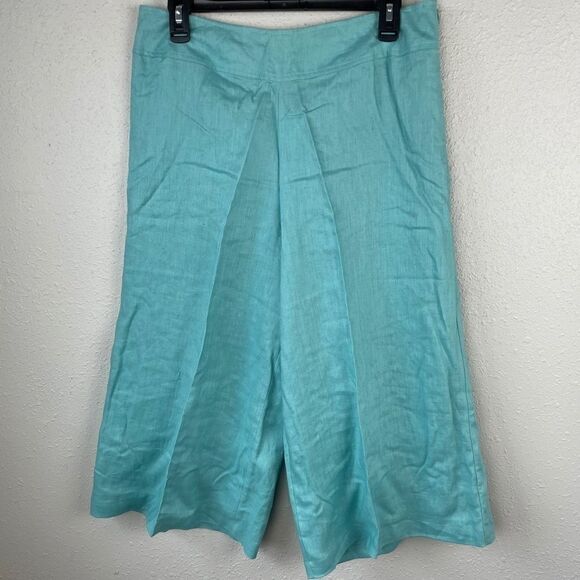 Super cute and classic pair of linen pants featuring a cropped wide leg design. They measure 16 inches at the waist with a 19 inch hem.
