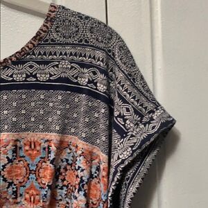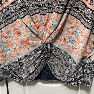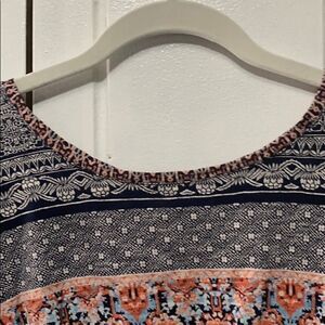 NWT Lucky Brand gorgeous cap sleep print blouse top size S/P. Cute cuffed Cap sleeves, front gathered hem.