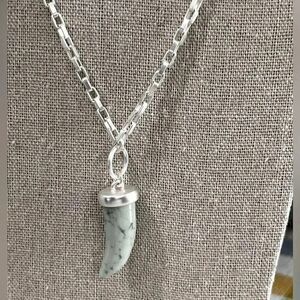 NWTĀ LuckyāSilverāGemstoneāGreenāTuskāPendantāNecklaceā#LBNK