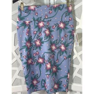 Bright and cheerful floral skirt from Lularoe. New with tags. Size XS. Style Cassie. Textured. Pencil body contouring style. 95% polyester, 5% spandex. Machine washable. Made in Vietnam. Excellent condition. Nonsmoking home.