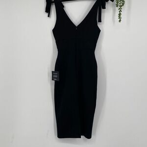 NWT Lulus Date Night Done Right Black Tie-Strap Bodycon Midi Dress Black XS