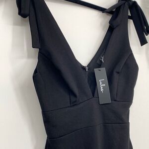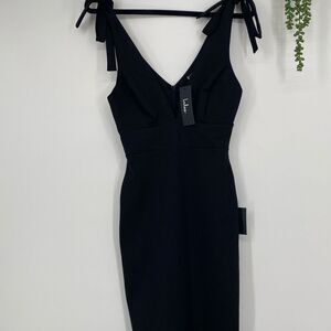 NWT Lulus Date Night Done Right Black Tie-Strap Bodycon Midi Dress Black XS