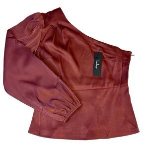 NWT Lulus Meet Me at Happy Hour Marsala Satin One-Shoulder Long Sleeve Top
