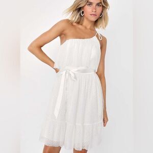 NWT Lulus White Mesh One-Shoulder Swiss Dot Mini Dress size medium