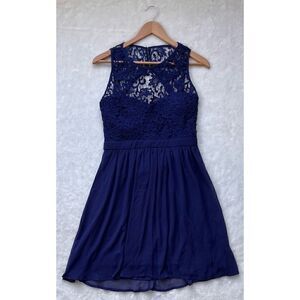 NWT Lulus Romantic Tale Navy Blue Lace Skater Dress