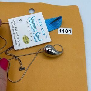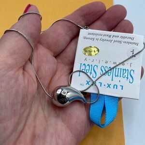 NWT Lux lux 18K gold dipped puffed sideways teardrop 16” necklace with 2” extender. This is stainless steel dipped in 18K gold.
