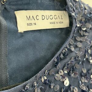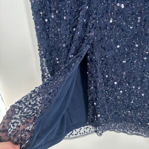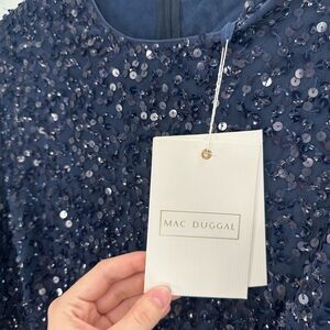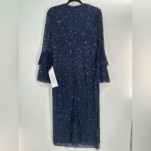 NWT MAC DUGGAL 10802 Navy Fully Sequined Ruffle Tiered 3/4 Sleeve Midi Dress