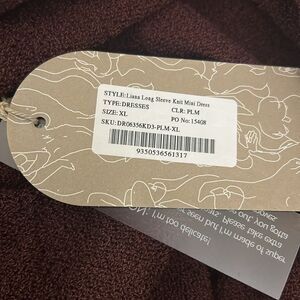 MESHKI Liana Long Sleeve Knit Mini Dress in Plum (color between red and purple). Size XL, new with tags. Retail $85, sold full price online.