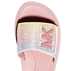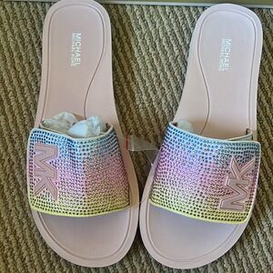 NWT MICHAEL KORS Rhinestone logo pool slide sandals 7