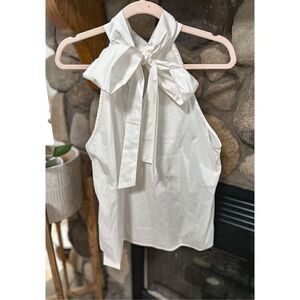 White sleeveless top with adorable bow tie at neck | size unknown but fits like a small to medium || brand new with tag attached ||