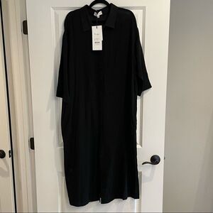 Black Cotton Chiffon Half Sleeve Shirt Dress