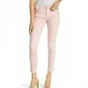 Fashioned from stretch denim in a pretty pastel pink, these simple skinnies with released hems have casual-cool style perfect for the weekend. - Zip fly with button closure - Five-pocket style - 98% polyester, 2% elastane - Machine wash, tumble dry - Made in the USA of imported fabric