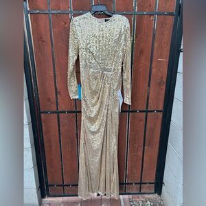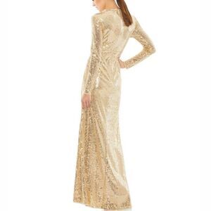 NWT Mac Duggal Sequined High Neck Long Sleeve Draped Gown Gold 10824 size 10