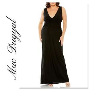 NWT Mac Duggal Plus Size Sleeveless V-Neck Cutout Back Gown - BLACK
