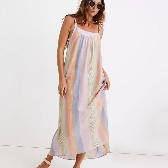 NWT Madewell Tie-Back Cover-Up Maxi Dress in Rainbow Stripe