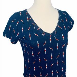 NWT Maison Jules V Neck Swimmer Tee S Navy blue