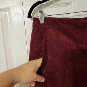 NWT Mango Genuine Leather deep red wide leg pants, size 8, 2 front pockets, 2 faux pockets in back, 1 button 1 slip clasp zipper closure, very heavy material, 100% leather, excellent unused condition.