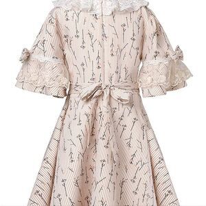 【GIRLS DRESS】 Cute bows are added to the cuffs to make this printed casual dress look more cute.