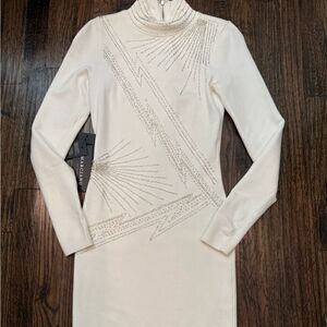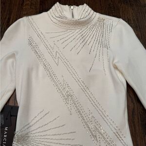 Beautiful white knit with embellished front. Mock neck and zipper at the back. This has not been worn and in excellent condition